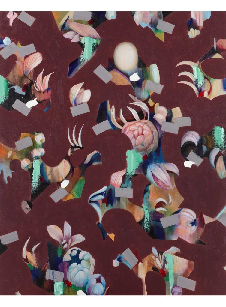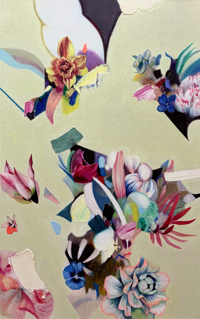 自己、女性性、生命、関係、愛などをテーマに、花や身体をモチーフにした半抽象画を描いています。油彩やドローイング作品制作以外にも、ライブペインティングやファッションブランドとのコラボレーション、ミューラルの展開など、幅広く活動している。